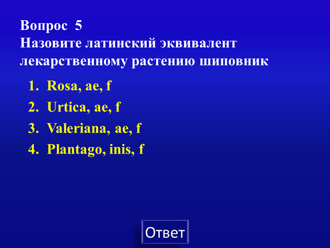 Вопрос 5 Назовите латинский эквивалент лекарственному растению шиповник