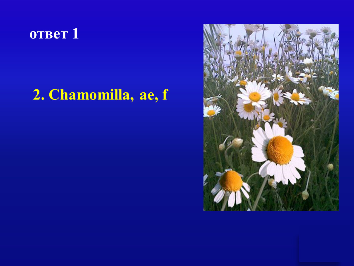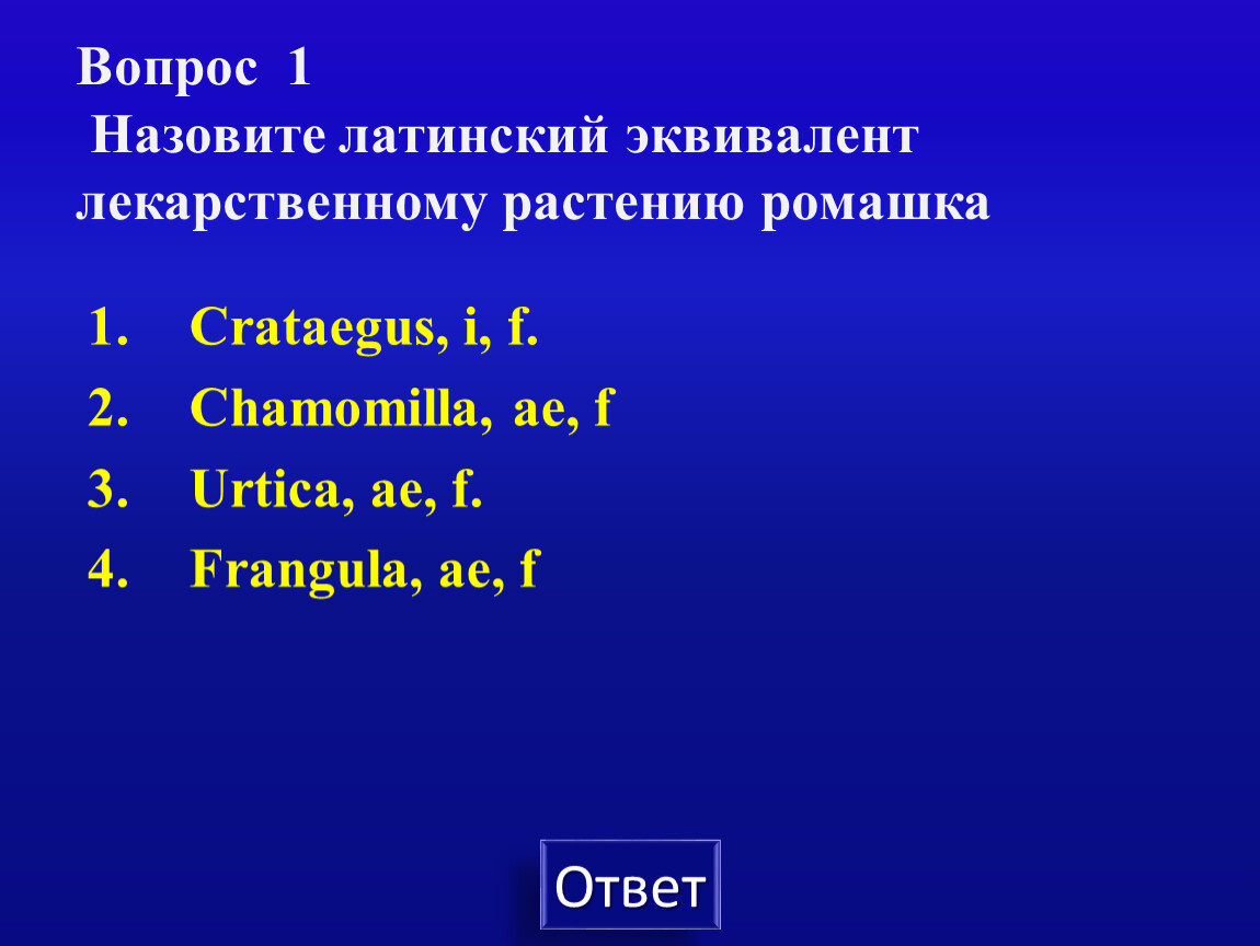 Вопрос 1 Назовите латинский эквивалент лекарственному растению ромашка