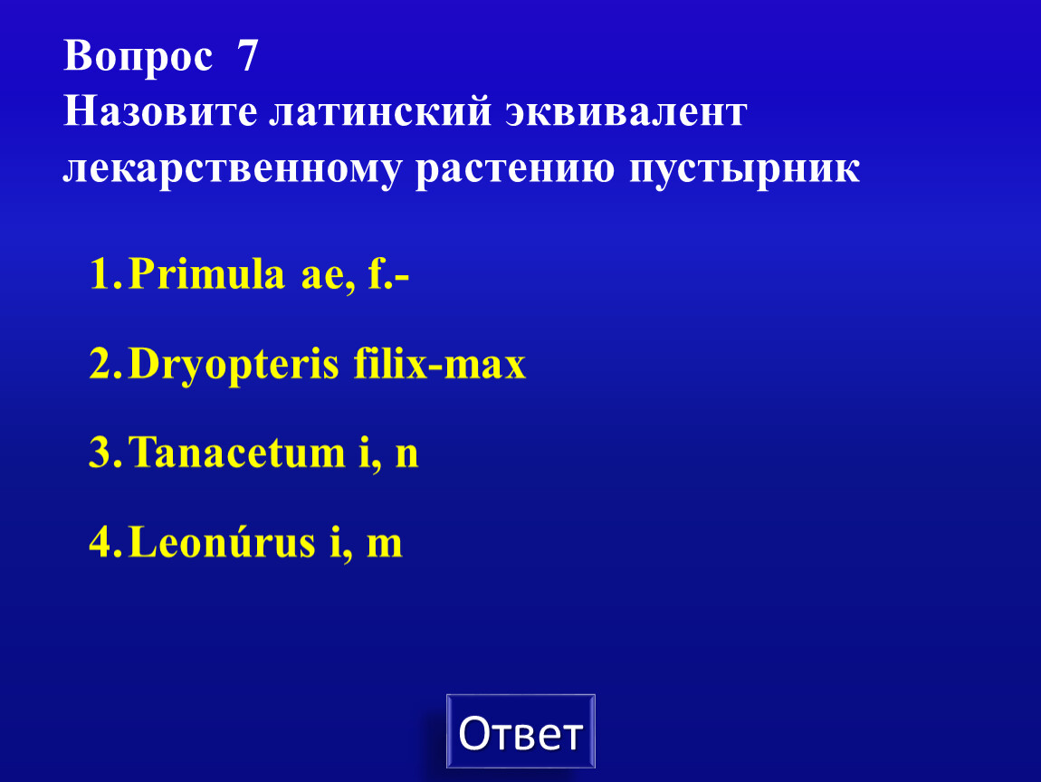Вопрос 7 Назовите латинский эквивалент лекарственному растению пустырник
