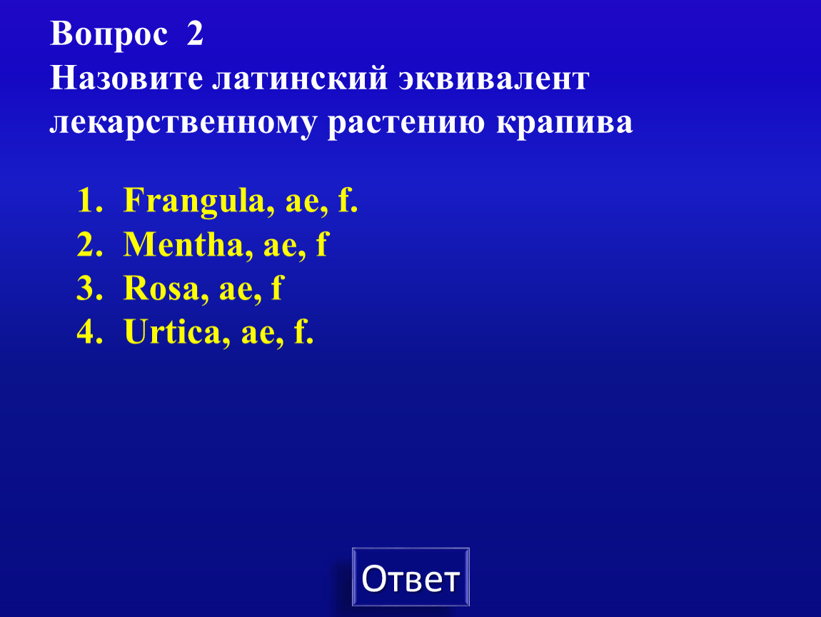 Вопрос 2 Назовите латинский эквивалент лекарственному растению крапива