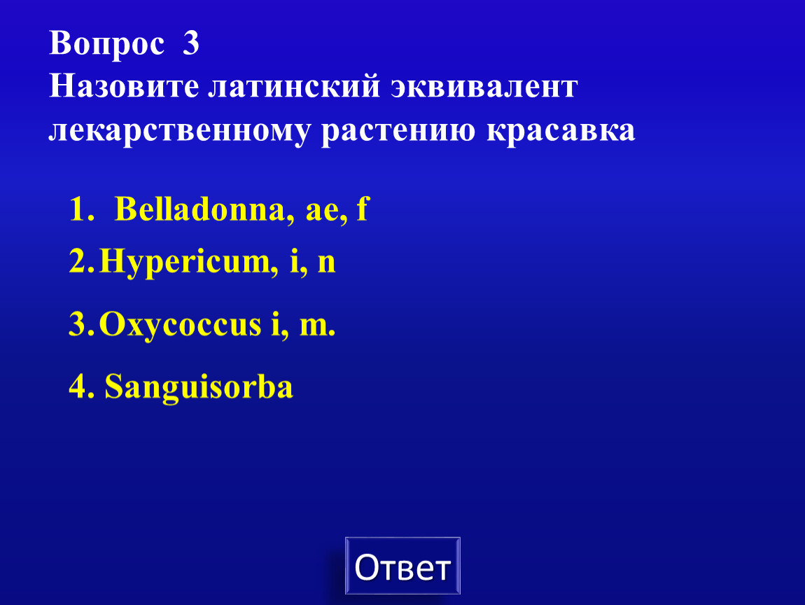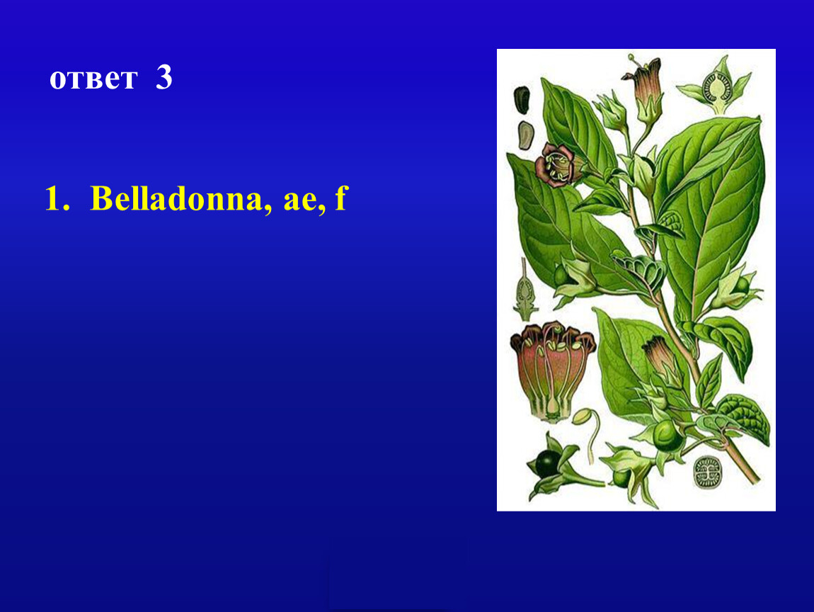 Вопрос 3 Назовите латинский эквивалент лекарственному растению красавка
