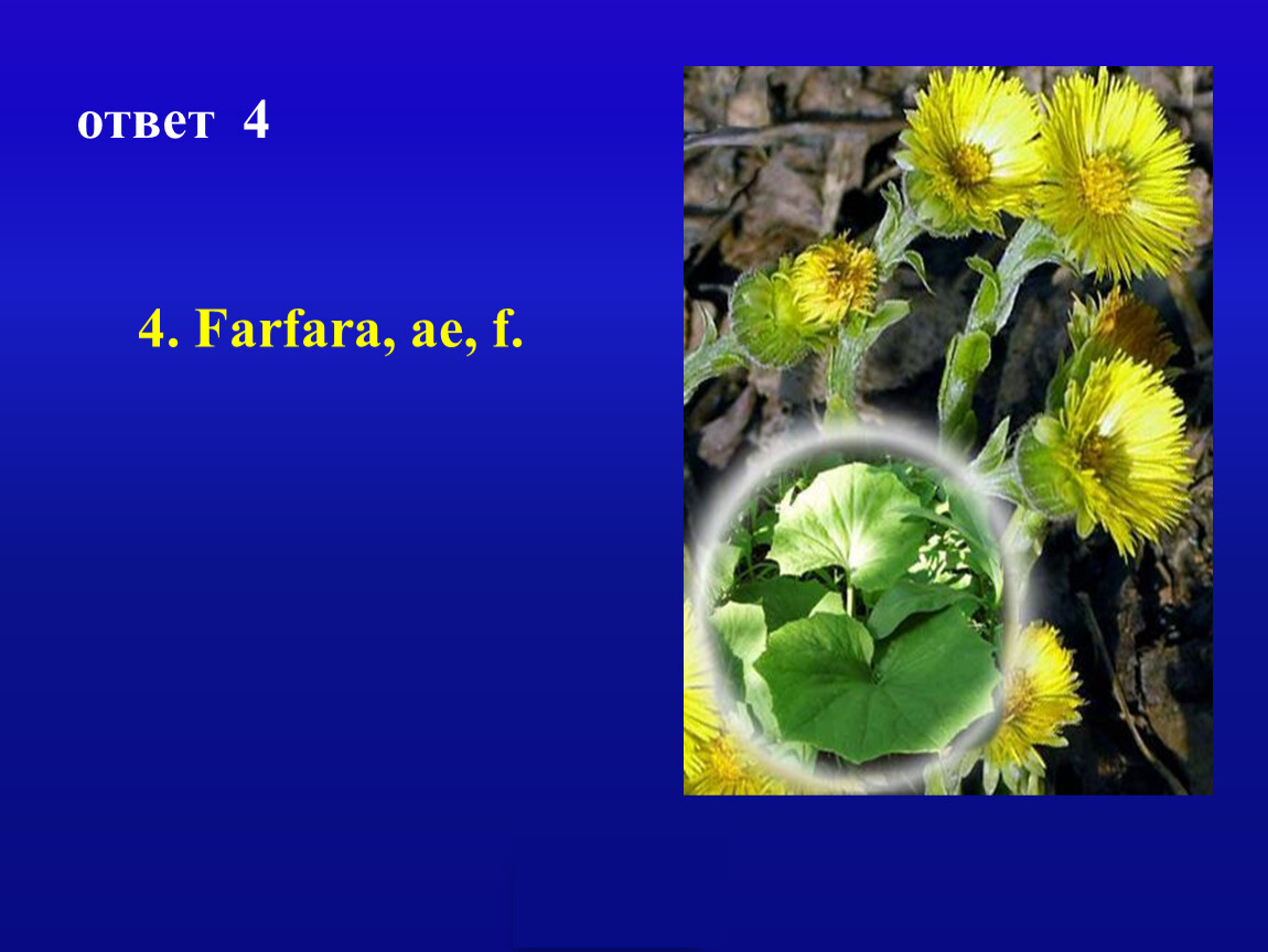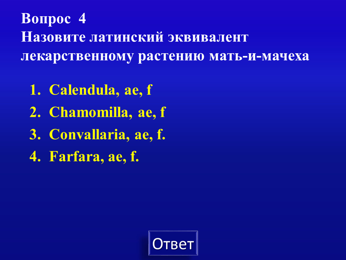 Вопрос 4 Назовите латинский эквивалент лекарственному растению мать-и-мачеха