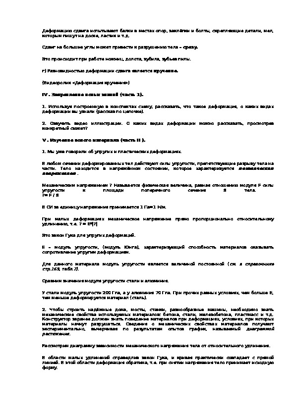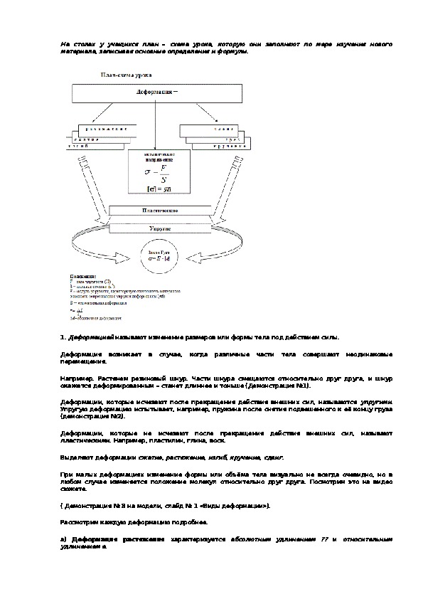 1. Используя построенную в конспектах схему, рассказать, что такое деформация, о каких видах
