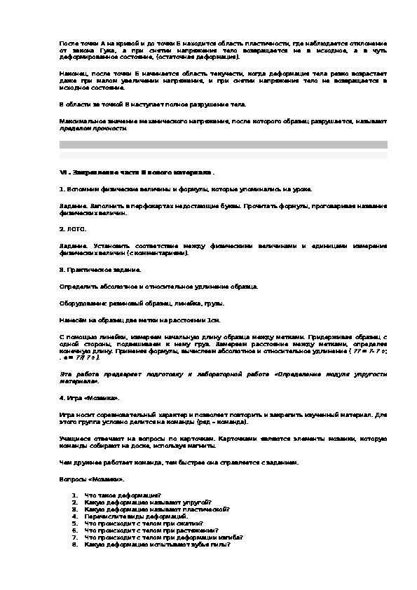 1. Мы уже говорили об упругих и пластических деформациях.