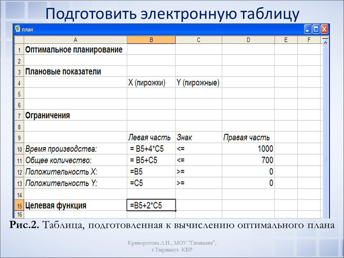 Подготовить электронную таблицу