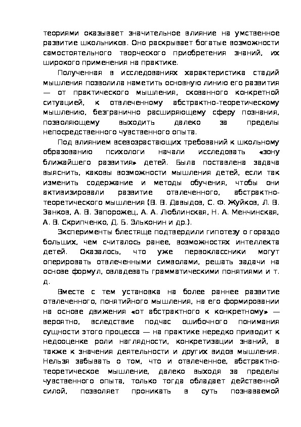 теоретического мышления (В. В. Давыдов, С. Ф. Жуйков, Л. В.