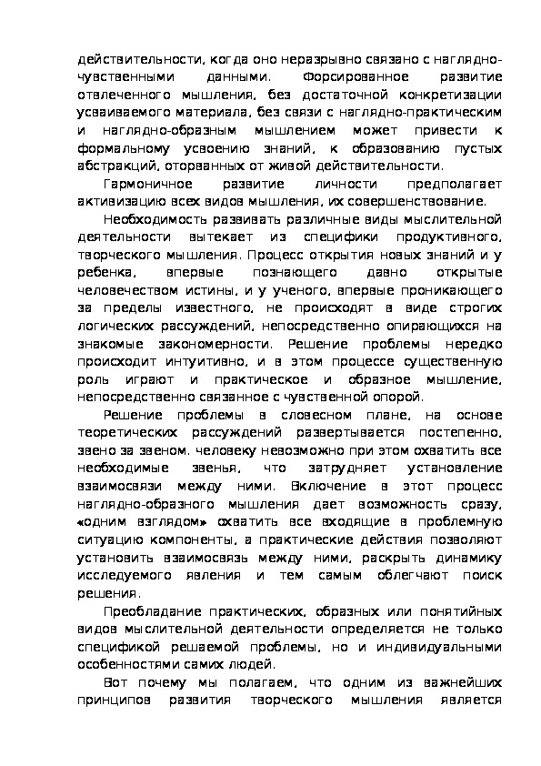 принципов развития творческого мышления являетсяоптимальное (отвечающее целям обучения и психическим