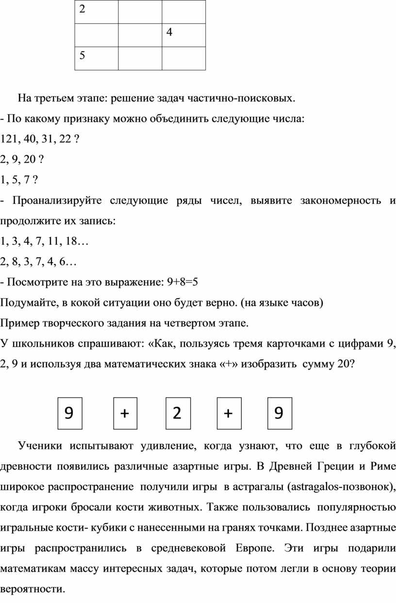 дидактических игр на уроках математики для развития креативного