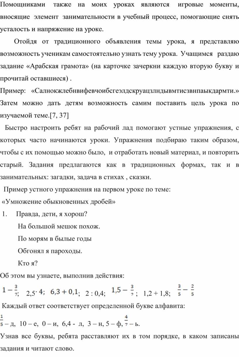 Отойдя от традиционного объявления темы урока, я представляю возможность ученикам самостоятельно узнать тему урока. Учащимся раздаю задание «Арабская грамота» (на карточке зачеркни каждую вторую букву и прочитай оставшиеся) .