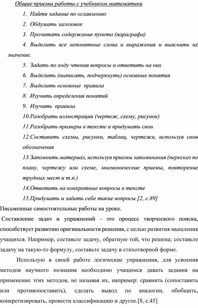 Общие приемы работы с учебником математики
