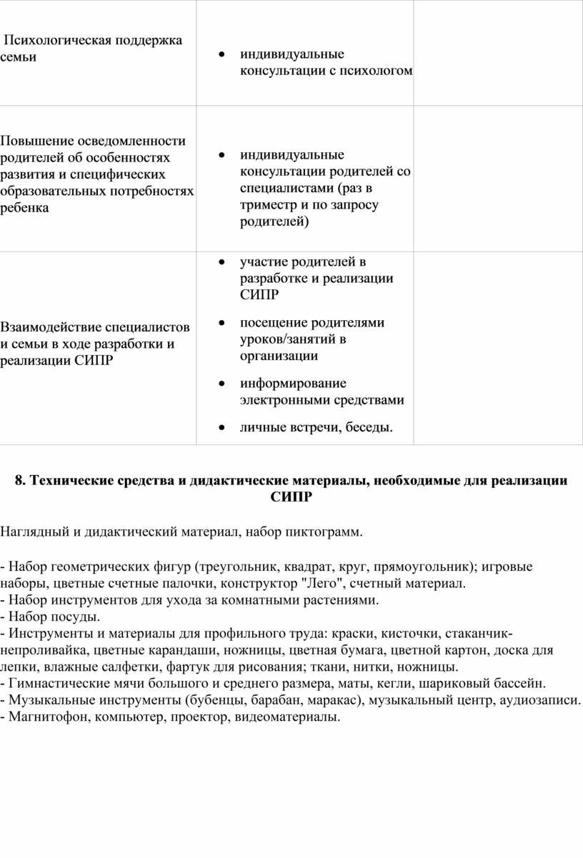 8. Технические средства и дидактические материалы, необходимые для реализации СИПР