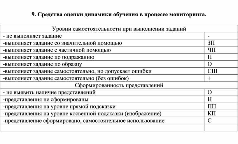 9. Средства оценки динамики обучения в процессе мониторинга.