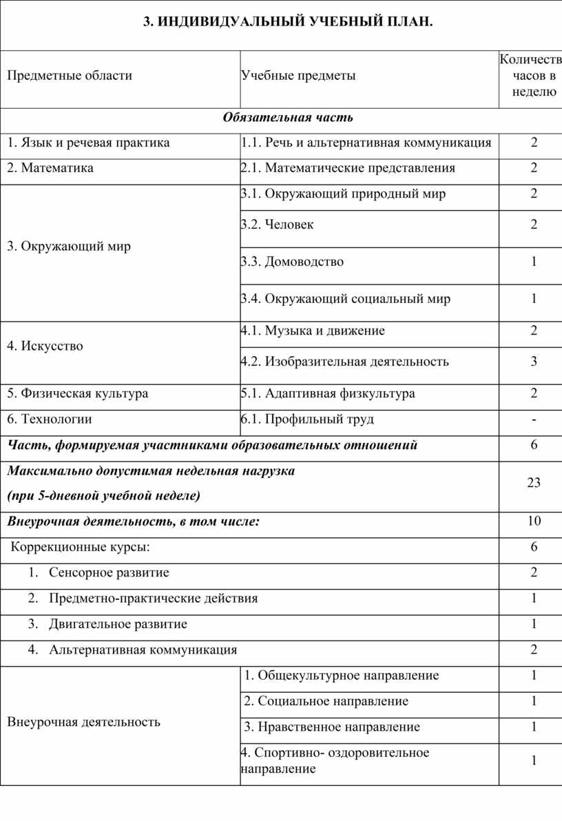 3. ИНДИВИДУАЛЬНЫЙ УЧЕБНЫЙ ПЛАН. |