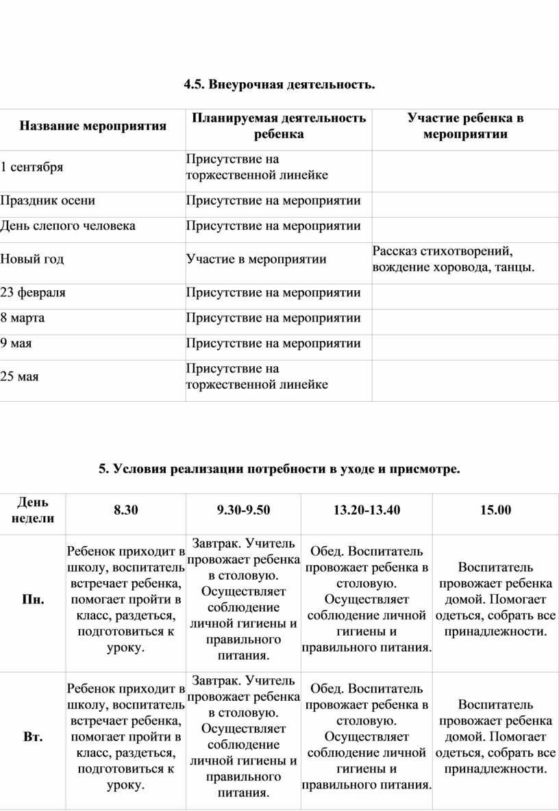 5. Условия реализации потребности в уходе и присмотре.