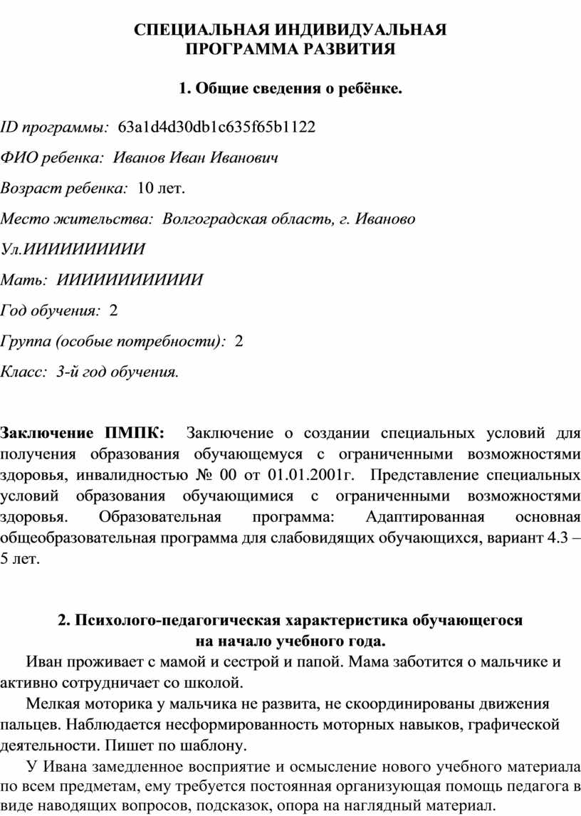 Опыт работы написания специальной индивидуальной программы развития (СИПР)