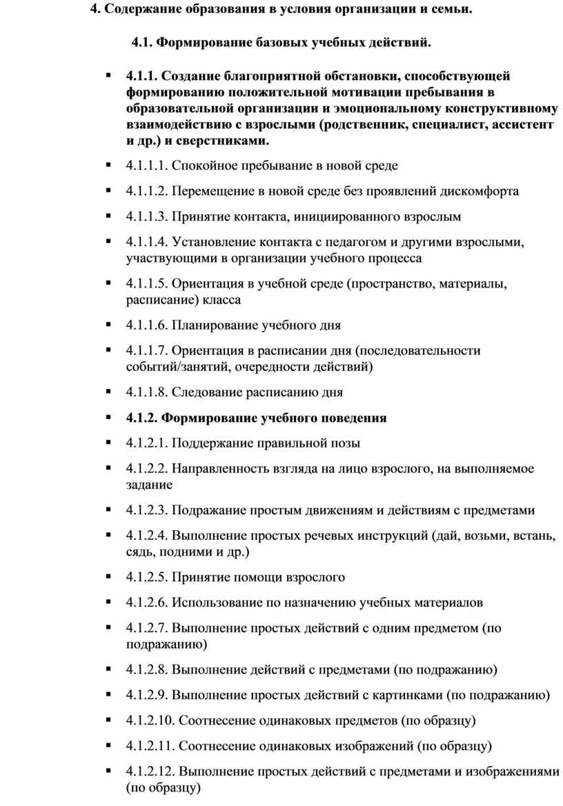 4. Содержание образования в условия организации и семьи.