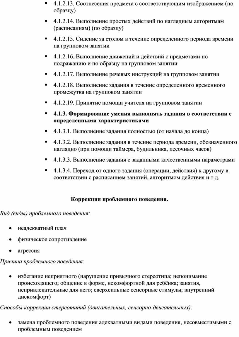 Коррекция проблемного поведения.