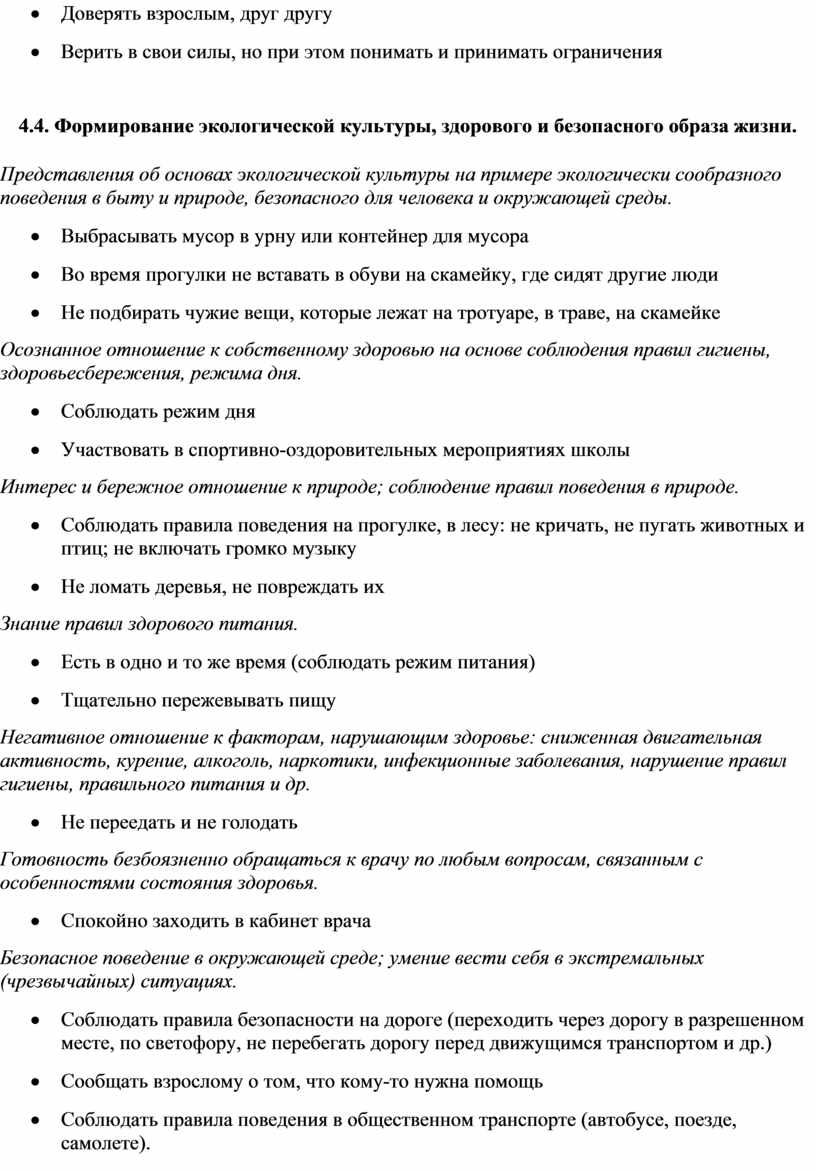 4.4. Формирование экологической культуры, здорового и безопасного образа жизни.
