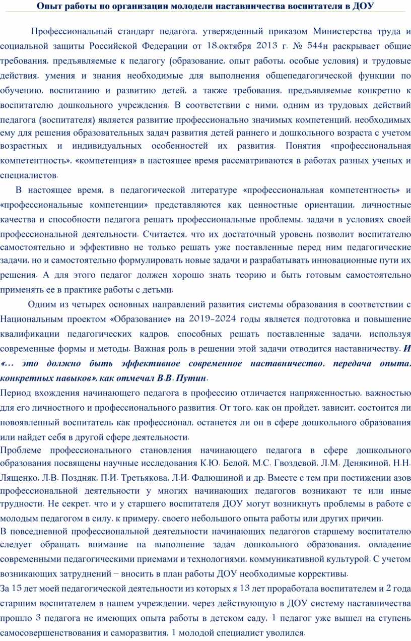 Опыт работы по организации молодели наставничества воспитателя в ДОУ