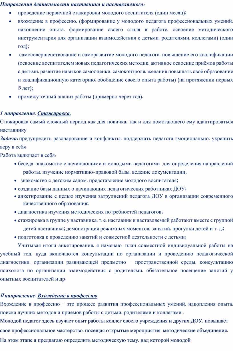 Направления деятельности наставника и наставляемого: