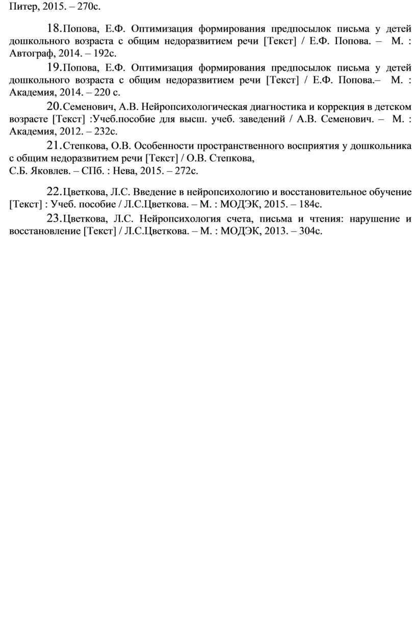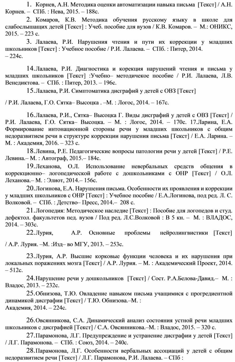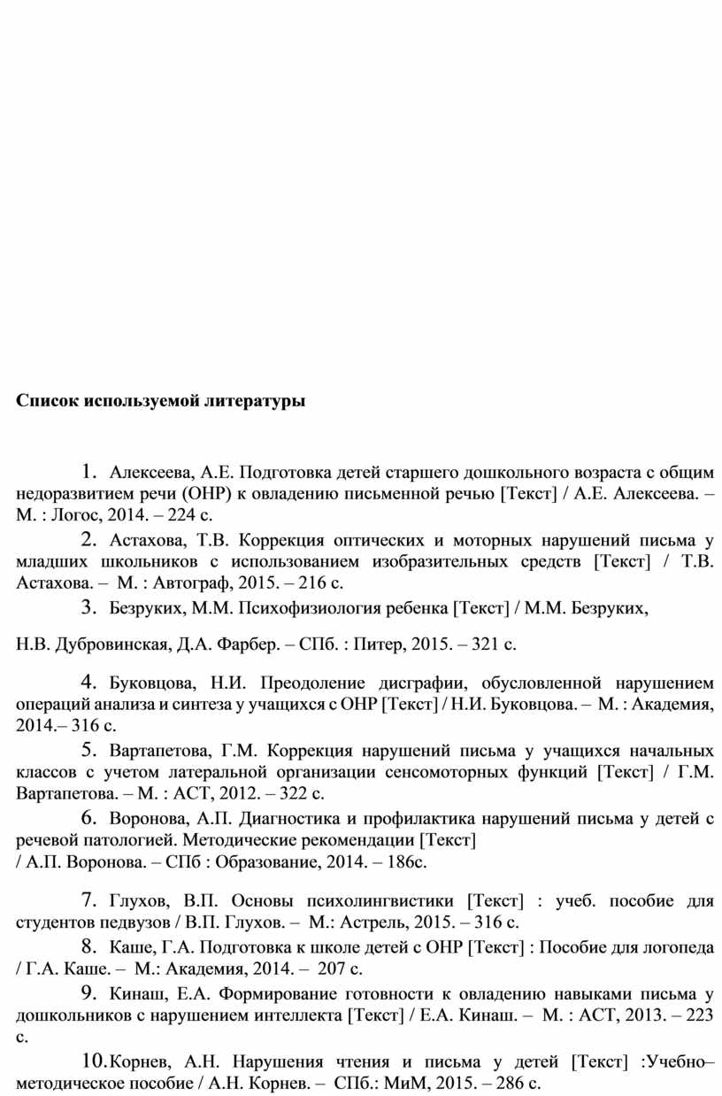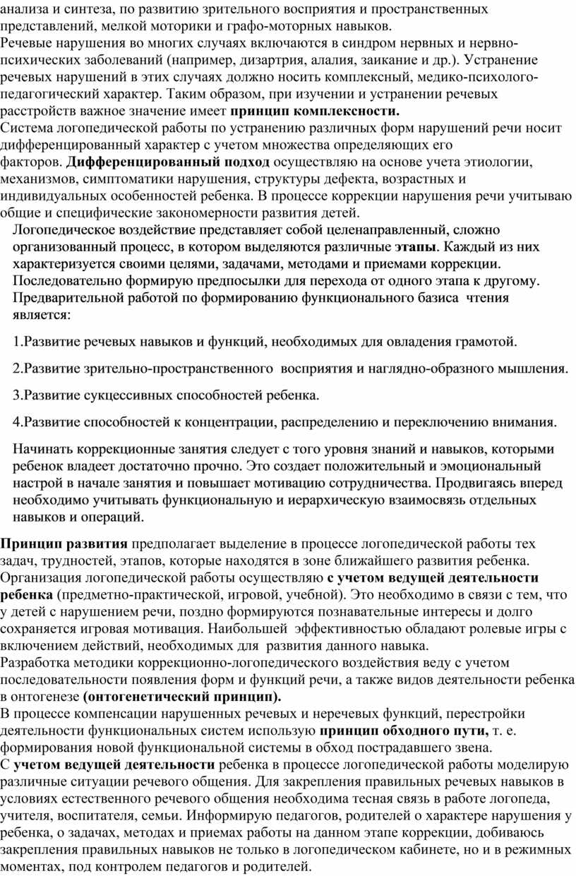 Г.А. Каше, Р.И. Лалаева, P.E. Левина, Е.А. Логинова, А.Р. Лурия, Л.Г. Парамонова, И.В. Прищепова, Г.В. Чиркина, Л.С. Цветкова, образование дети получат, если у них будет сформированы навыки письма и чтения, потому, что чтение– это комплексный универсальный психологический и физиологический процесс.
