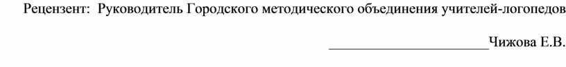 Рецензент: Руководитель Городского методического объединения учителей-логопедов