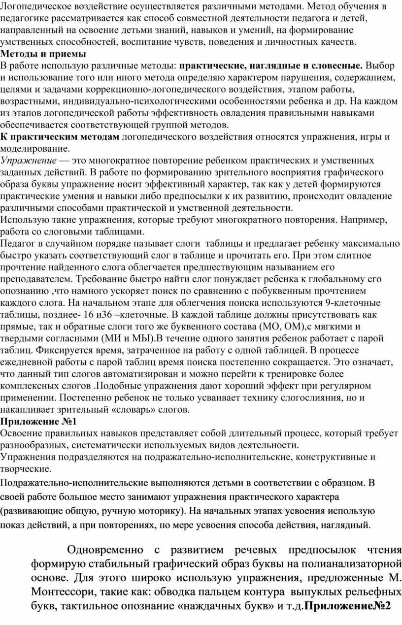 «Полуглобальный метод обучения чтению детей дошкольного возраста с речевыми нарушениями.