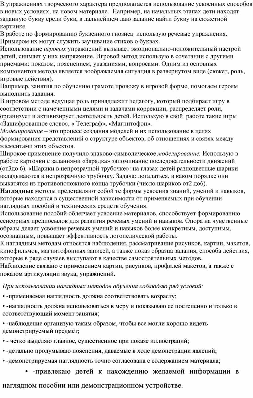 В процессе логопедической работы по теме опыта большое значение придаю общедидактическим принципам: воспитывающего характера обучения, научности, систематичности и последовательности, доступности, наглядности, сознательности и активности, прочности, индивидуального подхода.