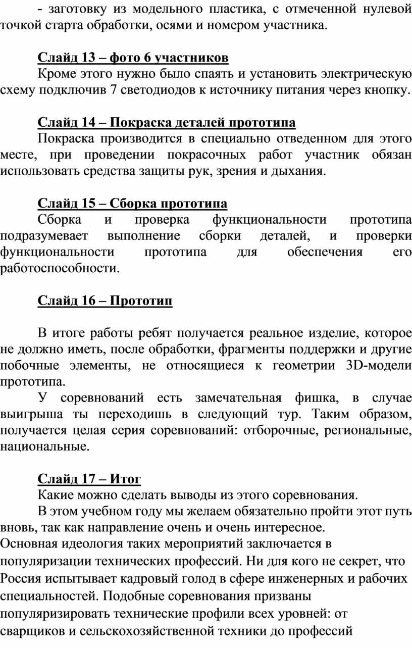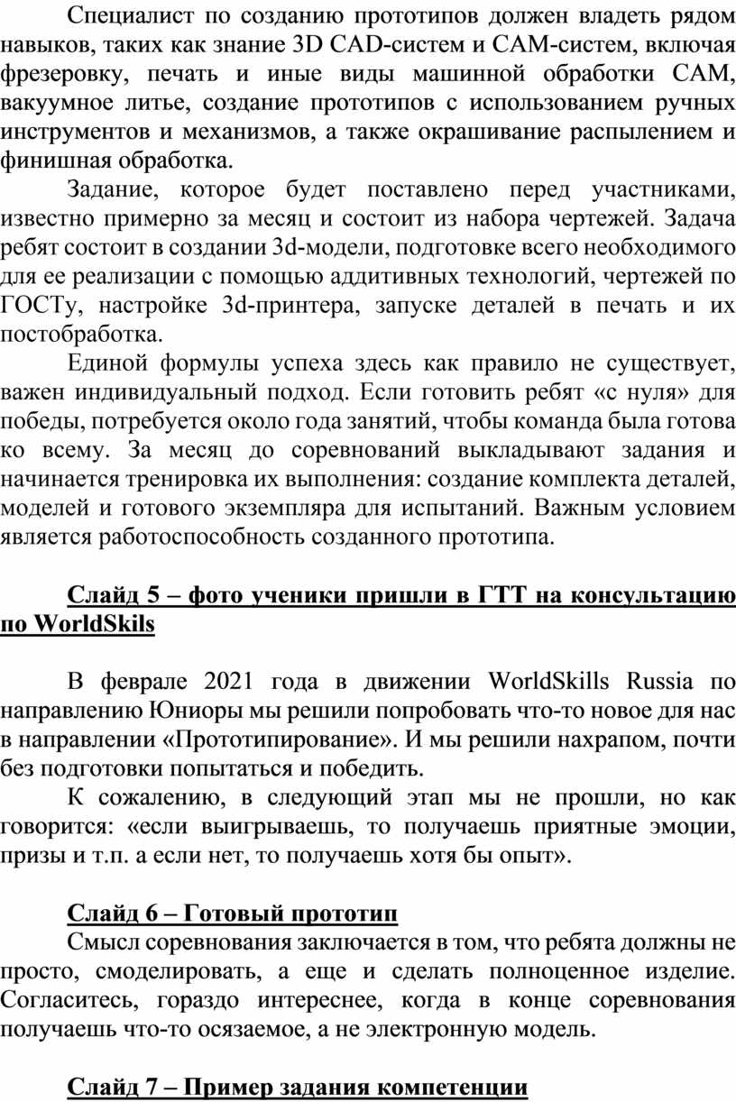 Опыт участия в движении WorldSkills Russia по направлению Юниоры компетенция «Изготовление прототипов»
