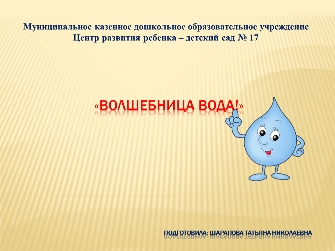 «ВОЛШЕБНИЦА ВОДА!» ПОДГОТОВИЛА: ШАРАПОВА ТАТЬЯНА НИКОЛАЕВНА