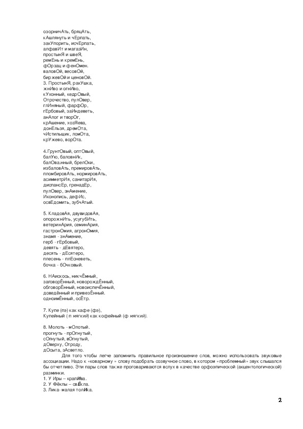 бы отчетливо. Эти пары слов также проговариваются вслух в качестве орфоэпической (акцентологической)