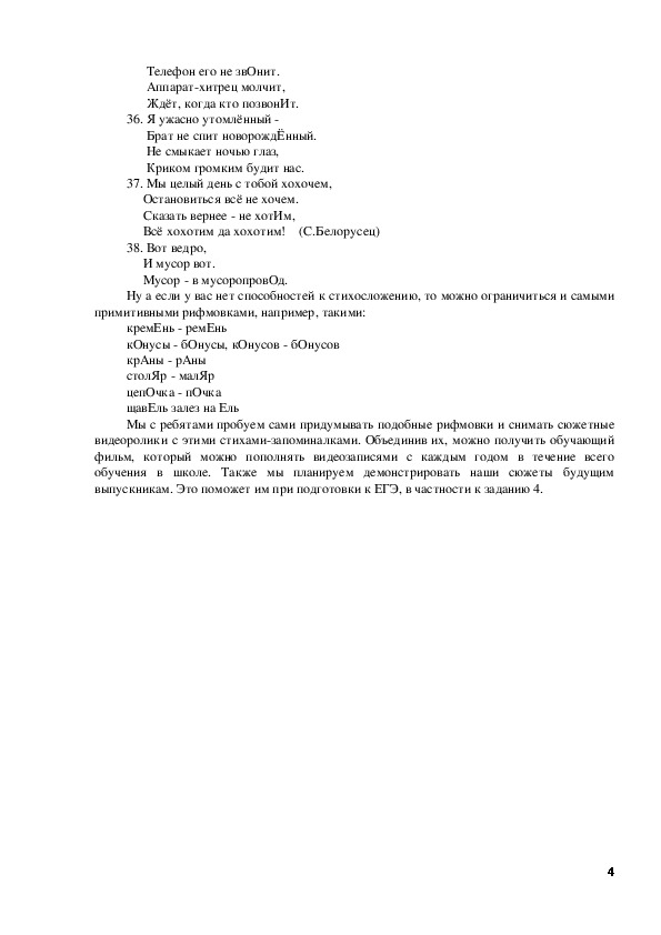 Орфоэпические рифмовки как способ запоминания норм ударения.