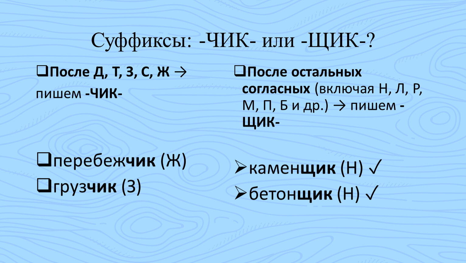Суффиксы: -ЧИК- или -ЩИК-?