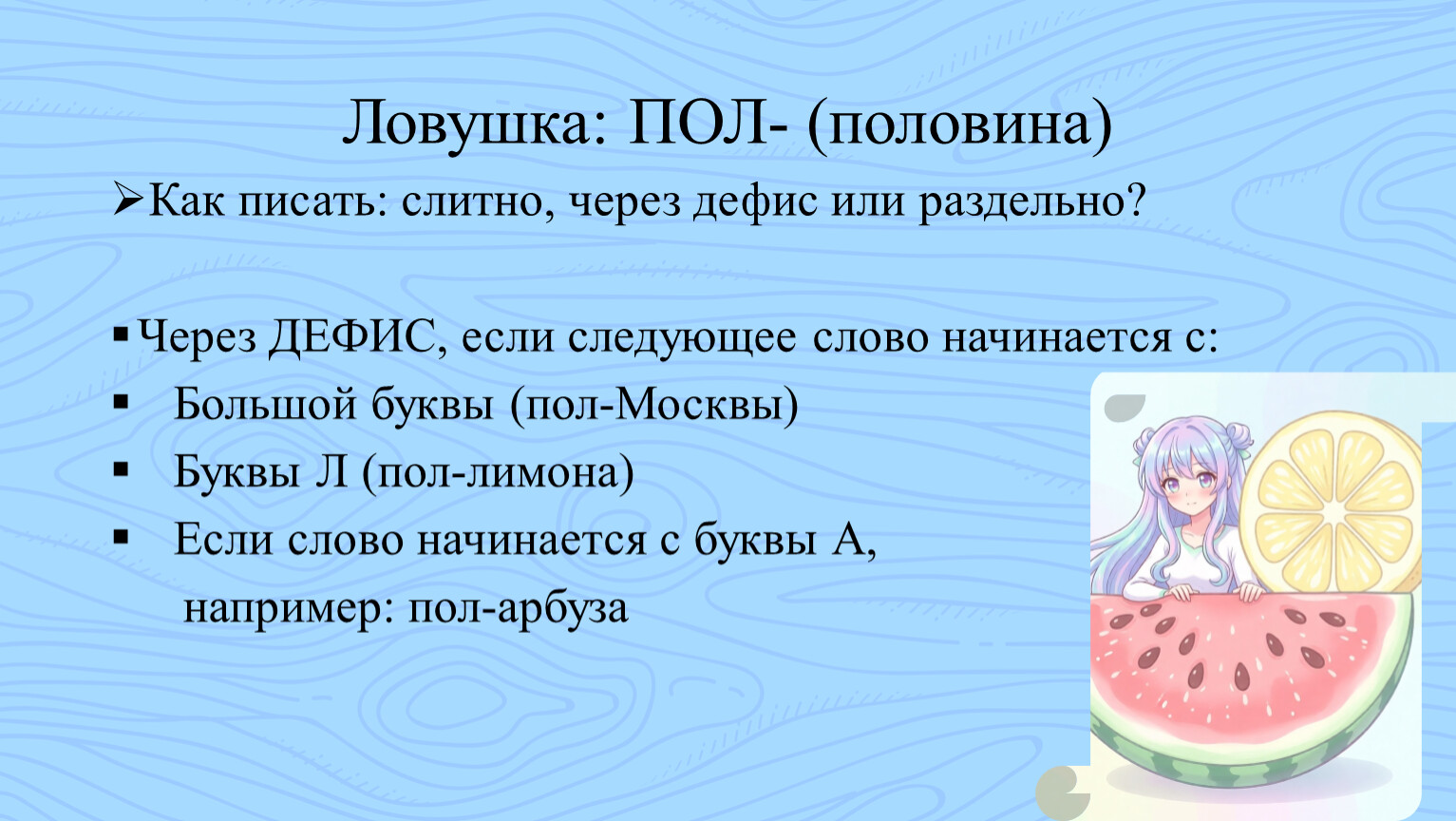 например: пол-арбуза