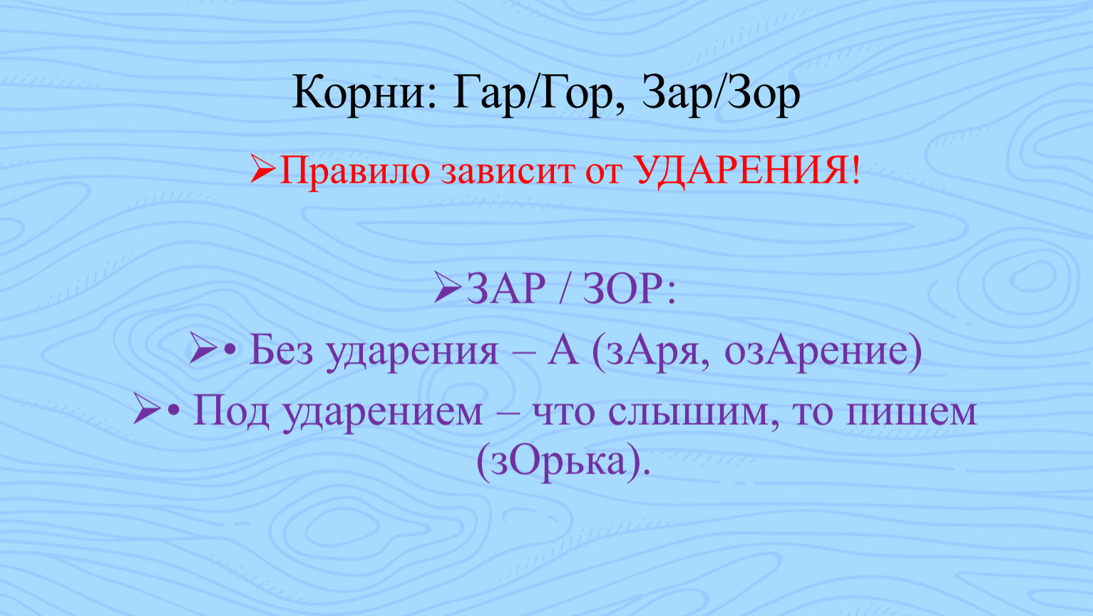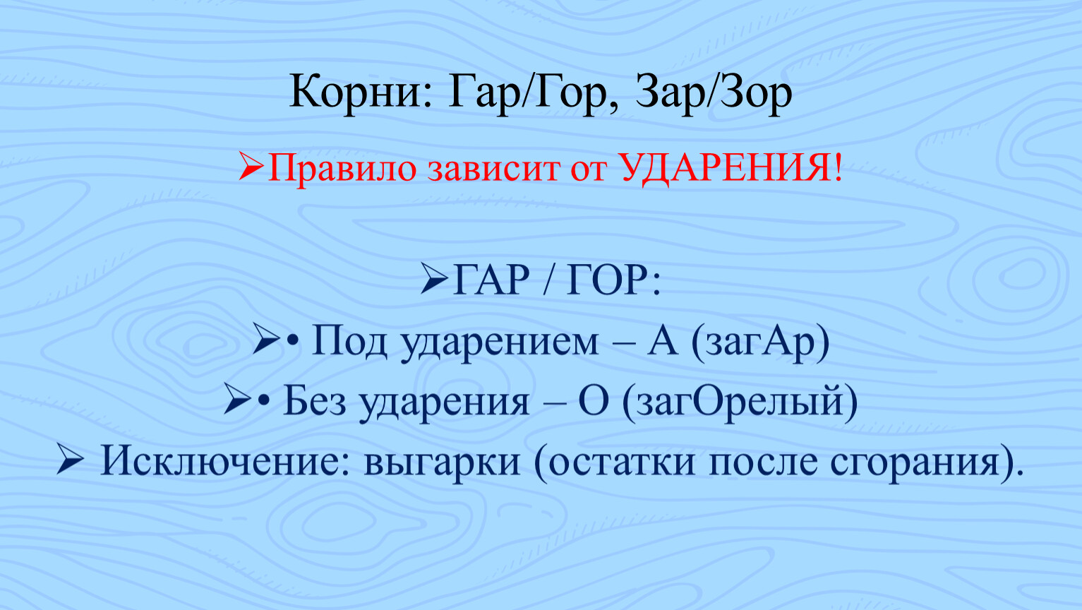 3. Разберем «вечные» ошибки в корнях (гар/гор, зар/зор).