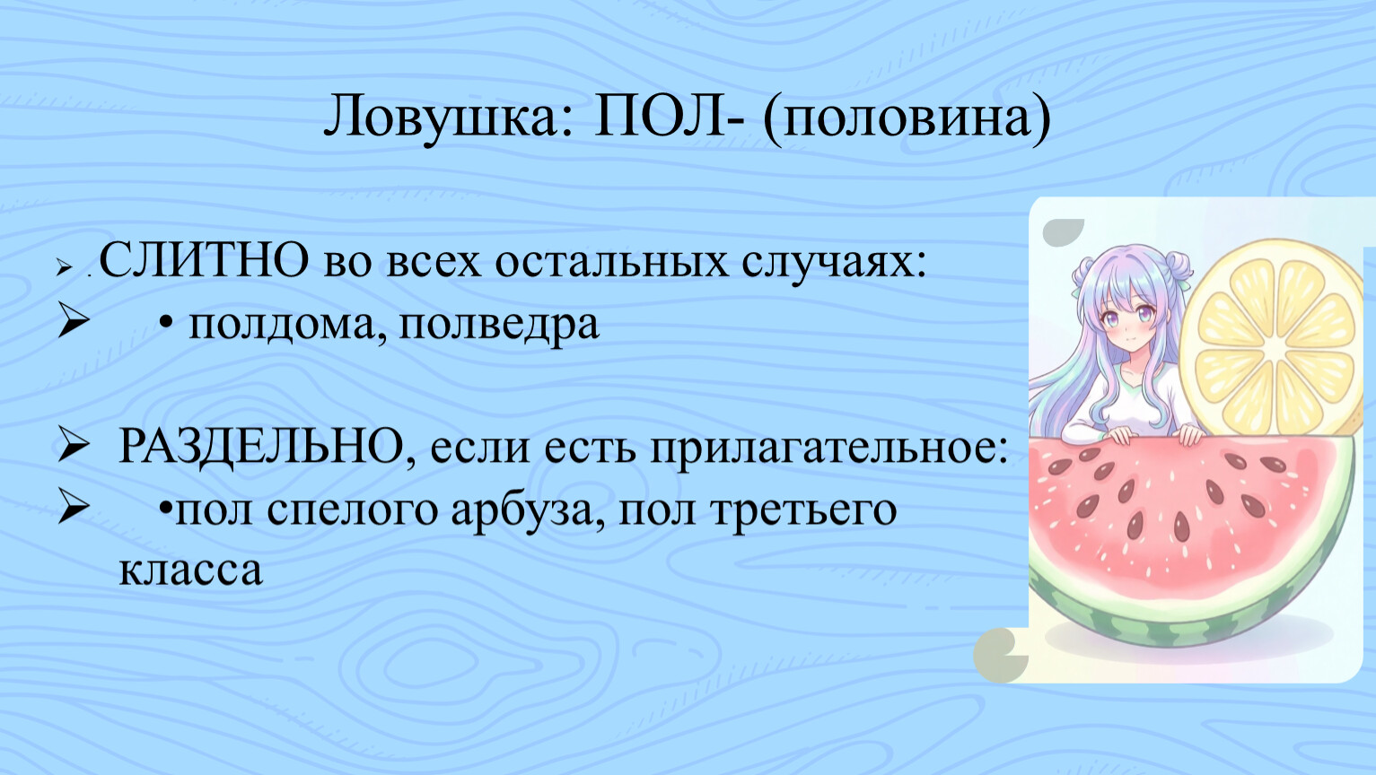 •пол спелого арбуза, пол третьего класса