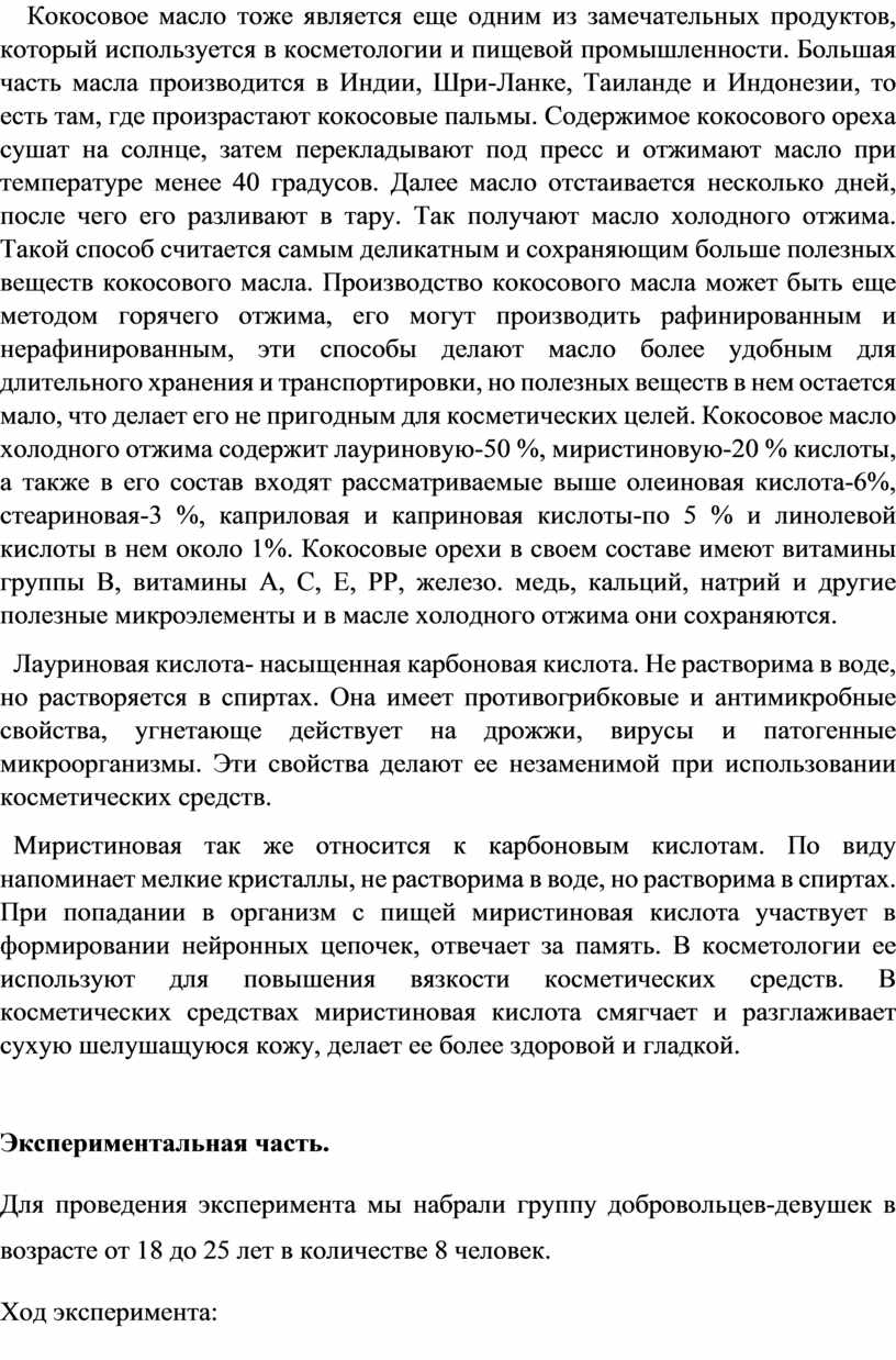 -Влияние компонентов масел арганы, ши, кокоса на самочувствие и состояние кожных покровов испытуемых.