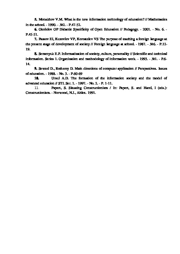 6. Okolelov OP Didactic Specificity of Open Education // Pedagogy. 2001. No. 6.
