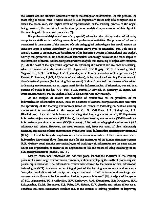 Khachaturov; there are such terms as the integrated learning environment (OP Kryukova),