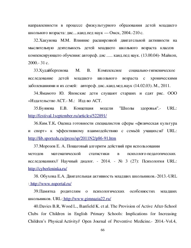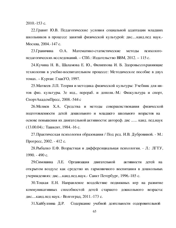 младшего школьного возраста и пути их Оптимизации ........................