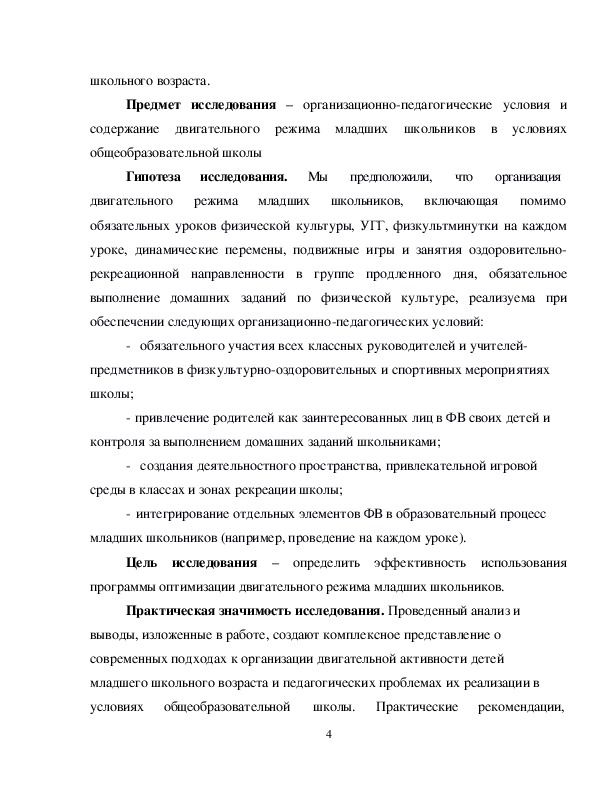 режима младших школьников в условиях общеобразовательной школы