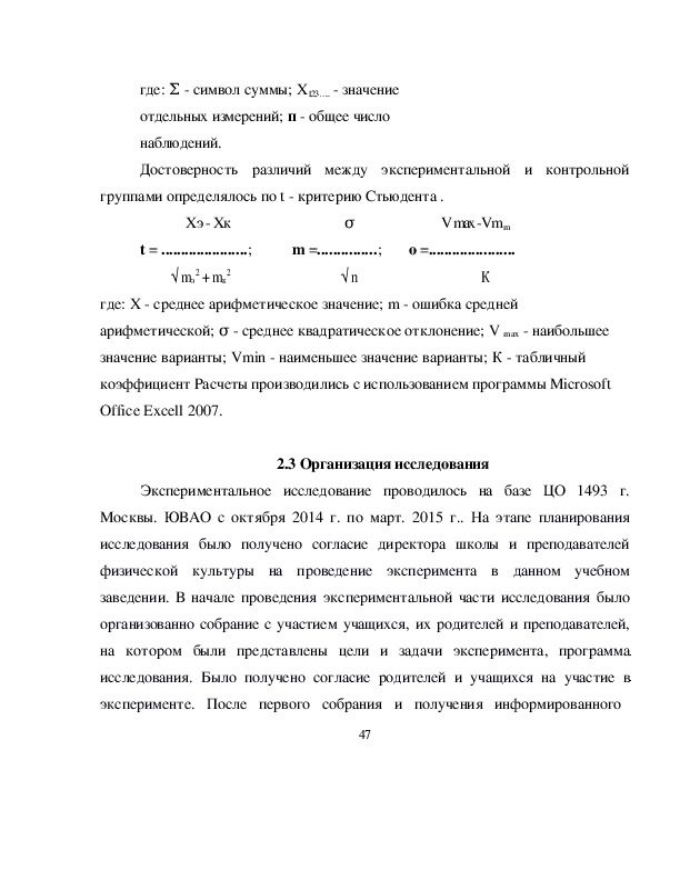2.3. Организация исследования…………………………………………...47