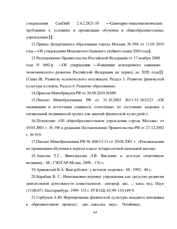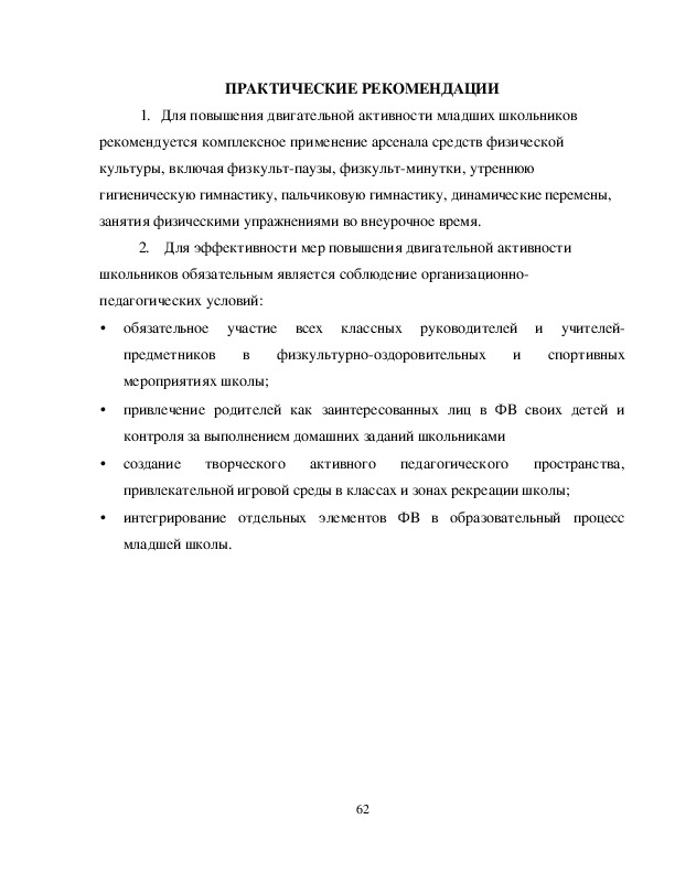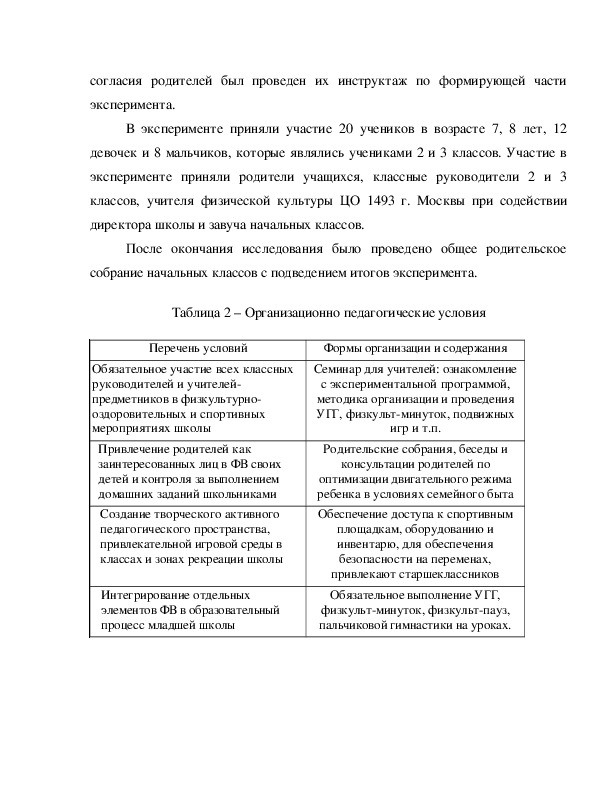 Организационнопедагогические условия оптимизации двигательного