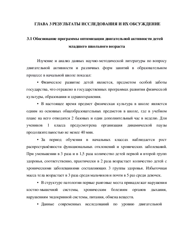 3.1 Обоснование программы оптимизации двигательной активности