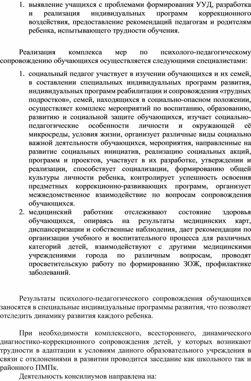 3. выявление учащихся с проблемами формирования УУД, разработка и реализация индивидуальных программ коррекционного воздействия, предоставление рекомендаций педагогам и родителям ребенка, испытывающего трудности обучения.