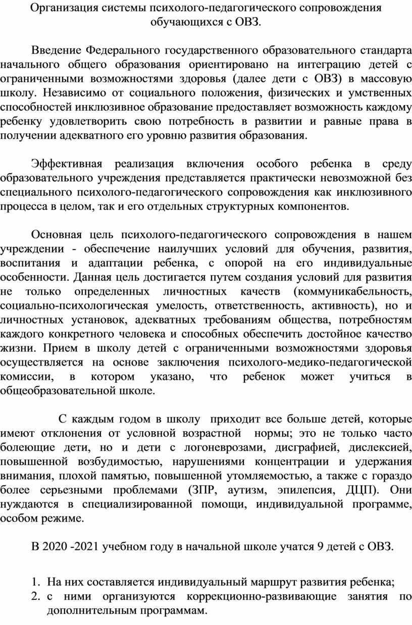 Организация системы психолого-педагогического сопровождения обучающихся с ОВЗ.