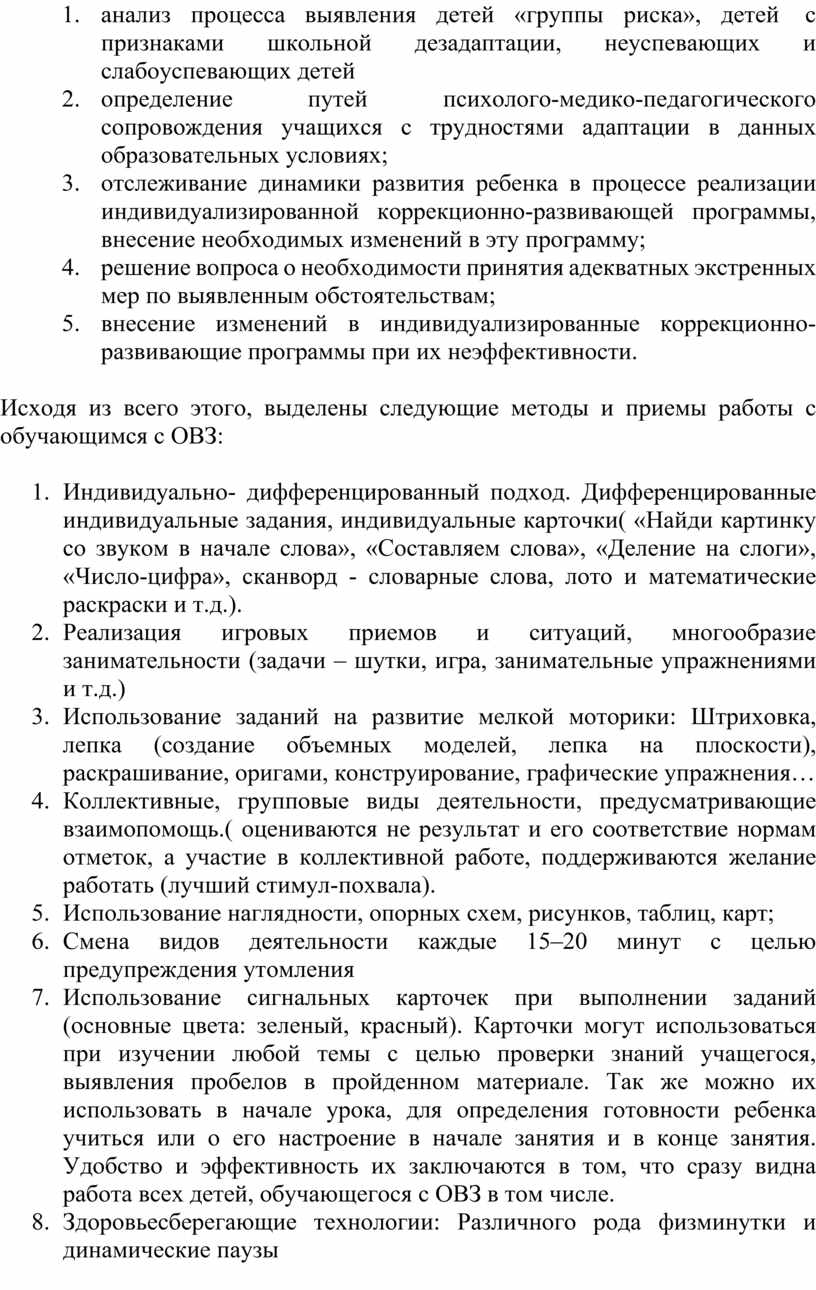 Исходя из всего этого, выделены следующие методы и приемы работы с обучающимся с ОВЗ: