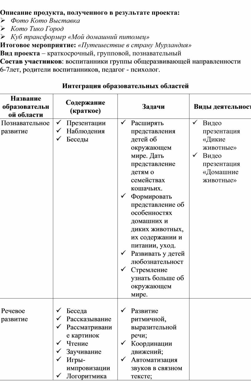 Получить разностороннее представление о домашнем питомце — кошке, развивать творчество и возможности самовыражения ребёнка.