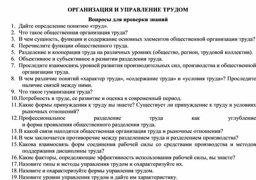 19. Назовите уровни управления трудом и дайте им характеристику.