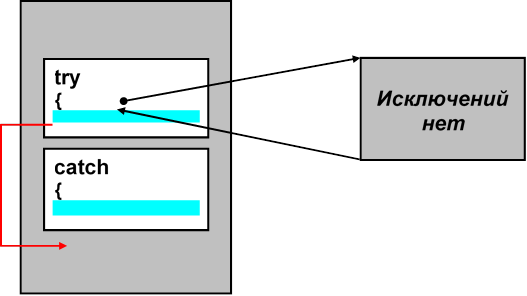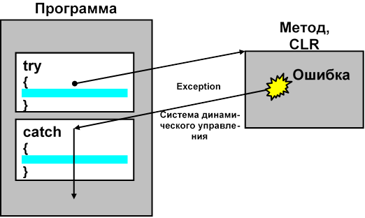 Основная идея обработки исключений состоит в том, что в программе можно определить блок кода, именуемый обработчиком исключений, который автоматически будет получать управление при возникновении определенной ошибки. Обработчик исключений оформляется в виде catch-блока.